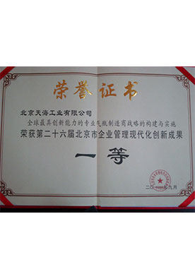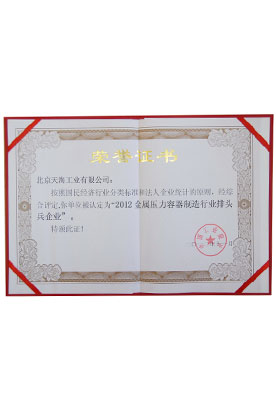 天海工業(yè)一直秉承“誠信、敬業(yè)、學(xué)習(xí)、創(chuàng)新,志在一流”的企業(yè)精神,以安全可靠的產(chǎn)品和優(yōu)質(zhì)的服務(wù),樹立了良好的企業(yè)形象,先后榮獲中國百強(qiáng)企業(yè)、北京市十佳外商投資企業(yè)、北京市高新技術(shù)企業(yè),中國金屬壓力容器制造行業(yè)排頭兵企業(yè)和全國“五一”勞動(dòng)獎(jiǎng)狀、“北京市專精特新小巨人企業(yè)”、“國家級專精特新小巨人企業(yè)”等榮譽(yù)稱號。