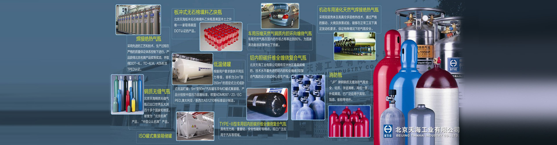 北京天海工業(yè)有限公司(以下簡稱“天海工業(yè)”)是北京京城機(jī)電控股有限責(zé)任公司所屬北京京城機(jī)電股份有限公司(簡稱京城股份,H股證券代碼00187,A股證券代碼600860)主要骨干企業(yè),是擁有七個(gè)專業(yè)氣體儲運(yùn)裝備生產(chǎn)基地(天海氫能、上海天海、天津天海、寬城天海、明暉天海、天海低溫、江蘇天海)及一個(gè)美國公司的集團(tuán)公司。天海工業(yè)及下屬子公司具有A2級高壓容器、B1級無縫氣瓶、B2級焊接氣瓶、B3級纖維纏繞氣瓶、B4級低溫絕熱氣瓶、B5級溶解乙炔氣瓶、C2級罐式集裝箱、D級中低壓容器的設(shè)計(jì)和生產(chǎn)資質(zhì)??缮a(chǎn)800余個(gè)品種規(guī)格的鋼質(zhì)無縫氣瓶、玻璃纖維環(huán)向纏繞氣瓶、碳纖維全纏繞復(fù)合氣瓶(含三型瓶、四型瓶、呼吸器)、無石棉填料乙炔瓶、焊接氣瓶、焊接絕熱氣瓶(含車用)、固定式壓力容器、低溫罐式集裝箱、船用罐、CNG/LNG/H2車載供氣系統(tǒng)及加氣站等系列產(chǎn)品,廣泛應(yīng)用于汽車、化工、消防、醫(yī)療、石油、能源、城建、食品、冶金、機(jī)械、電子等行業(yè)。